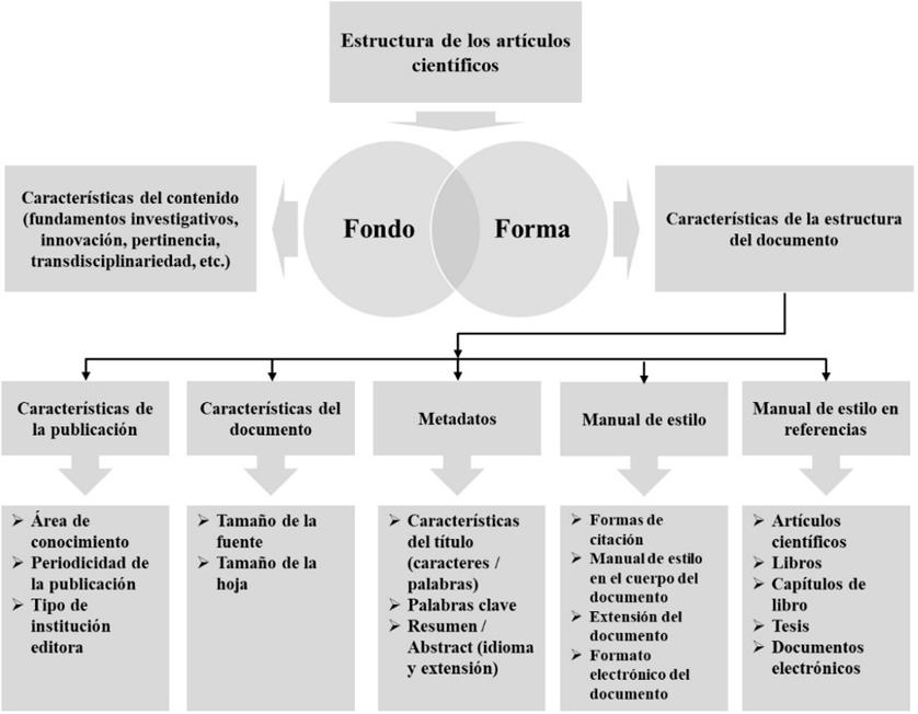 Respecto al fondo de los contenidos científicos, se espera que entre las competencias de los profesores e investigadores, la competencia de la identificación temática esté altamente desarrollada. En cambio, los aspectos relacionados con la forma se convierten en elementos obligatorios y varían en mayor medida dependiendo de cada revista científica en la que se desea contribuir, incluso se convierten en el primer filtro para determinar la continuación de procesos de evaluación para su publicación. La principal preocupación en este sentido, es cuando la forma de los documentos científicos toma mayor complejidad y preponderancia sobre el fondo o contenido de los mismos.