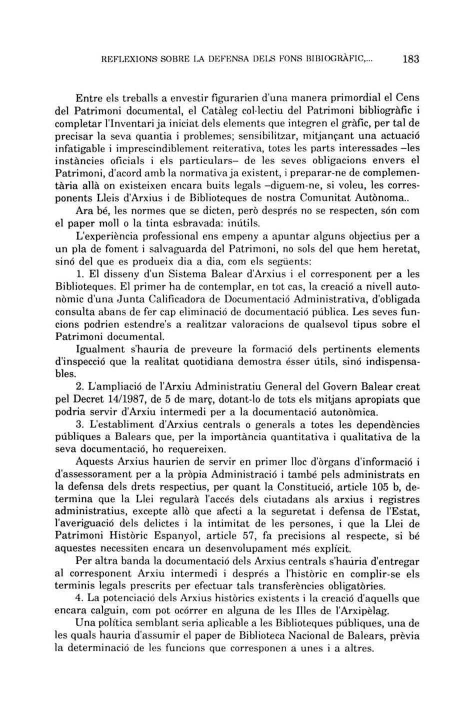 Un año antes de retirarse, en 1993, escribe un artículo para el Boletín de la Sociedad Arqueológica Luliana, BSAL, 48 (1992) que a mi juicio recoge sus ideas más elaboradas sobre la realidad y el porvenir de la profesión. En su artículo, después de hacer una introducción etimológica del término “documentos” hace un repaso histórico a los desastres que ha sufrido el patrimonio documental balear a lo largo de los siglos:
